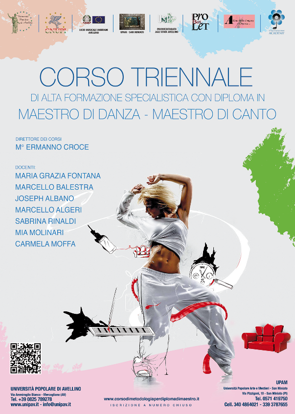 Creare delle figure professionali che possano dimostrare di aver seguito una formazione multidisciplinare con frequenza di un monte ore valido. Rendere gli allievi esperti a gestire una propria scuola di danza e/o di canto, non solo nelle materie tecniche, ma anche nella gestione amministrativa e fiscale della propria azienda. Trattasi di un progetto integrato che contribuisca a valorizzare il capitale umano presente nella regione e a potenziare il sistema della formazione per agevolare l’accesso all’occupazione per i giovani. Miriamo ad offrire l’agevolazione delle condizioni necessarie alla creazione di nuove imprese ed allo sviluppo dell’imprenditorialità locale incrementando l’indotto occupazionale attraverso la creazione di figure professionali qualificate e specializzate. Miriamo altresì alla creazione di un modello di formazione permanente, modulata sulle effettive competenze e fabbisogni anche di chi già opera nel settore. Il nostro corso porterà l’allievo ad impadronirsi di una metodologia, secondo concezioni e percorsi artistici innovativi. Egli vivrà nei tre anni della sua formazione un viaggio attraverso la psicologia dell’insegnamento, l'approccio con la classe nelle sue infinite sfumature, il percorso formativo differenziato a seconda dell'età degli allievi, le metodiche e gli esercizi ed i laboratori dei più grandi docenti del campo, seguendo la metodologia del Maestro Croce, attraverso la quale tutto sembra più semplice, più comprensibile. Ai corsi potranno accedere allievi in possesso del diploma di scuola media superiore, o che siano in possesso dei curricula lavorativi nell’ambito delle discipline indicate.